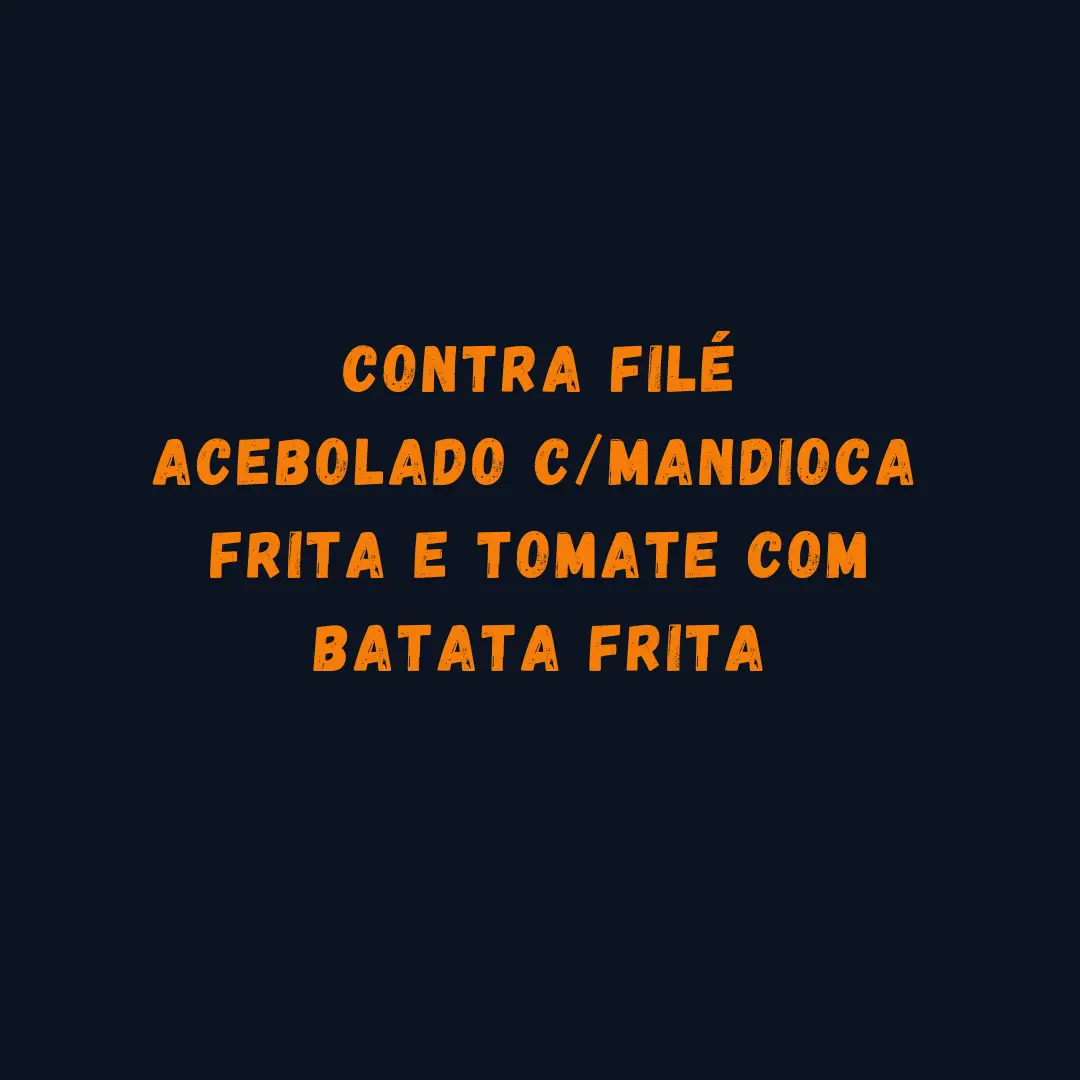 CONTRA FILÉ ACEBOLADO C/ MANDIOCA FRITA E TOMATE COM BATATA FRITA MEIA