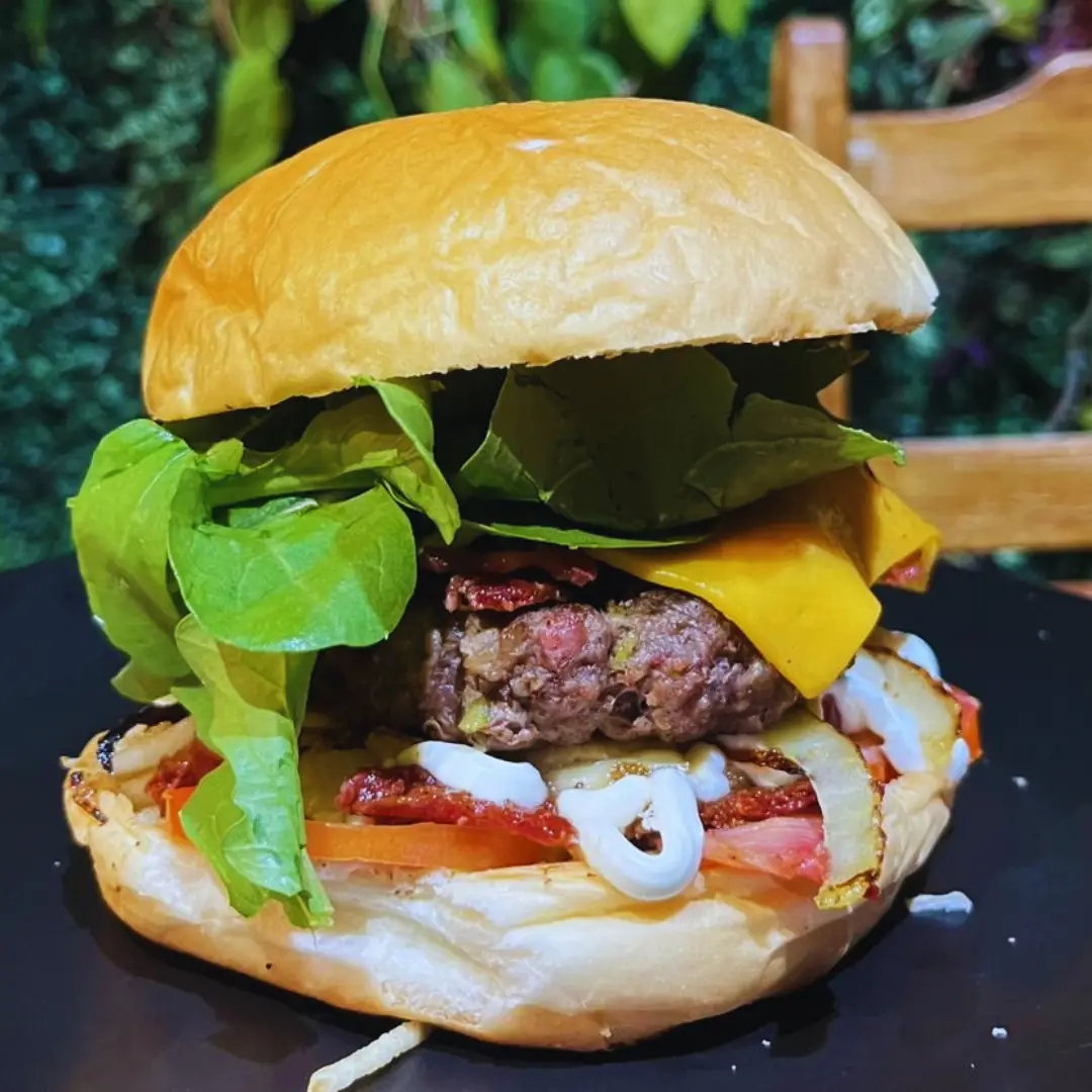 1 HAMBÚRGUER, CEBOLA CARAMELIZADA, BACON CROCANTE,