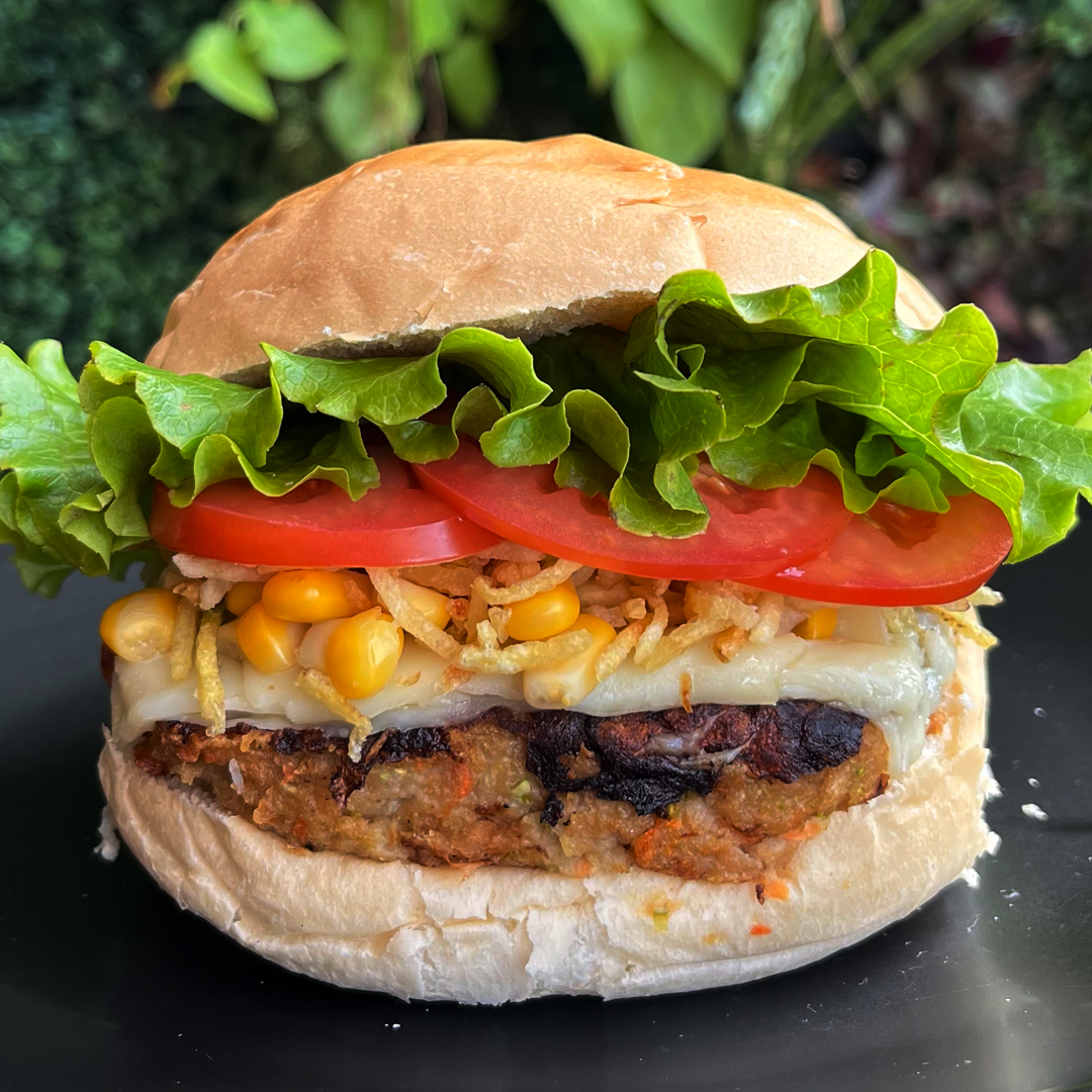 HAMBÚRGUER DE SOJA C/ ABOBRINHA, CENOURA E BETERRABA,