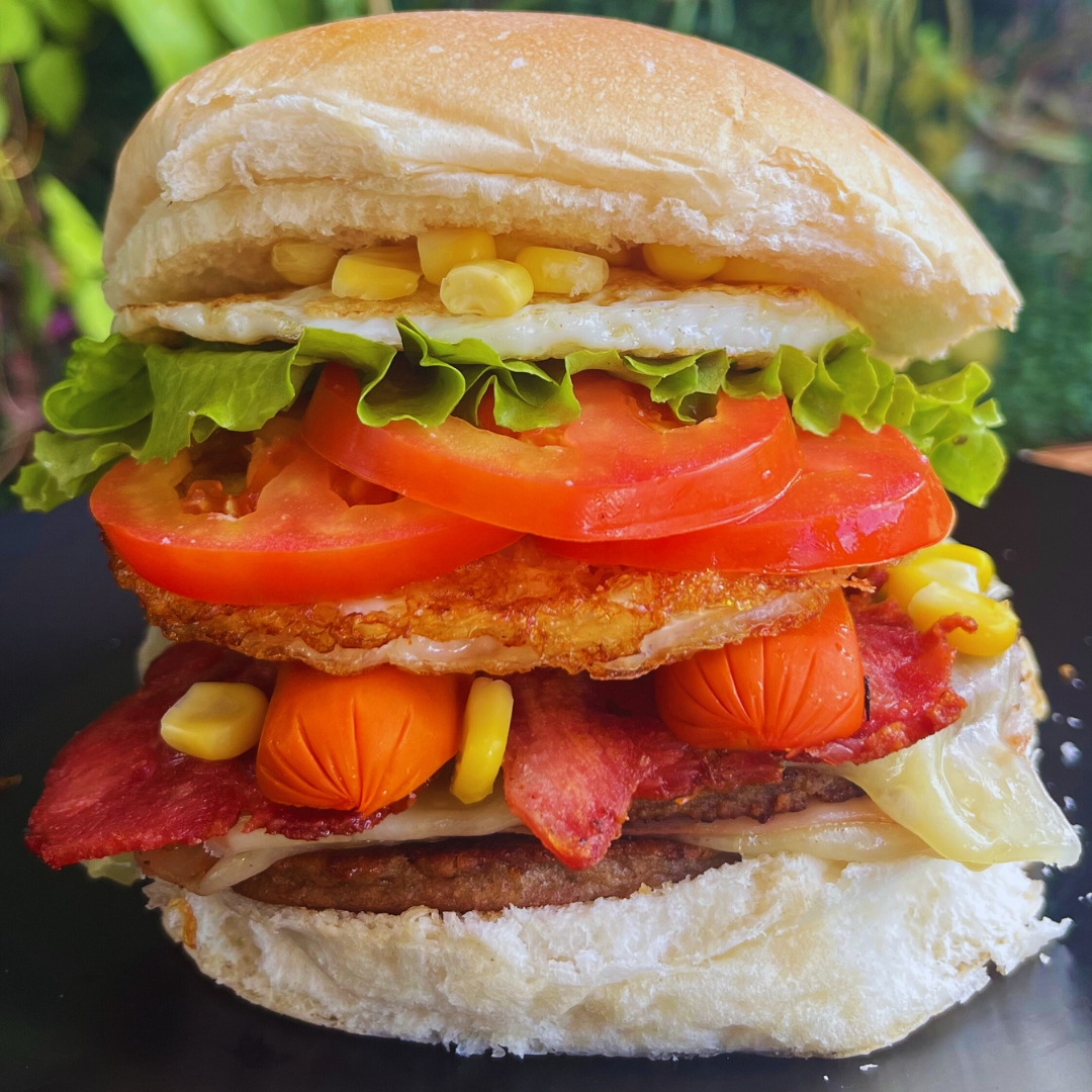 2 HAMBÚRGUERES, PRESUNTO, QUEIJO, 02 OVOS, BACON,